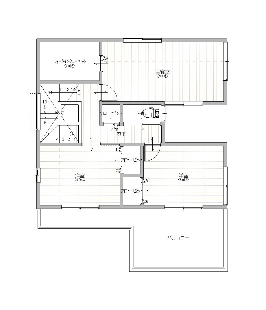 | 2階 | 洋室6帖×2、寝室9帖+WIC |
