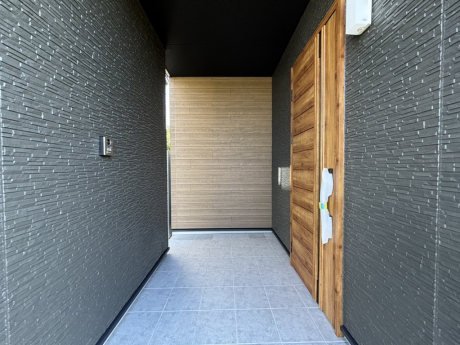 玄関前は広くて屋根のある便利な空間になっています!