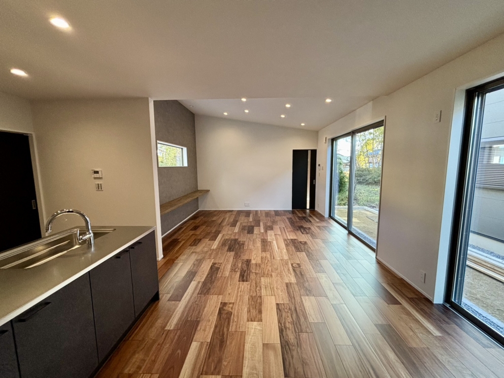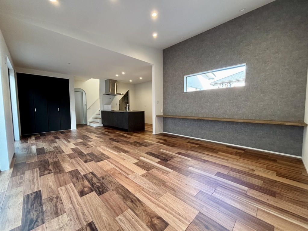 南面の広い間取りは大型の掃き出し窓を設け明るく暖かいリビングに♪リビングは3m超のカウンターを向け、仕事に宿題に使い勝手抜群です。