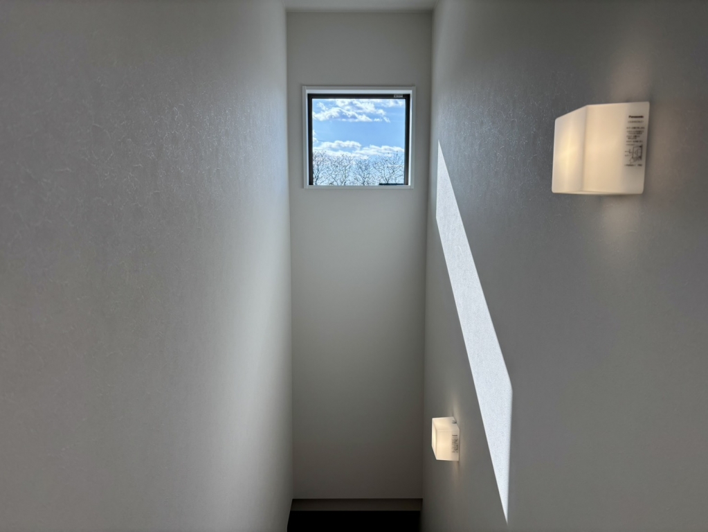 かわいい照明と階段を照らすFIX窓 少し見える空もステキですね
