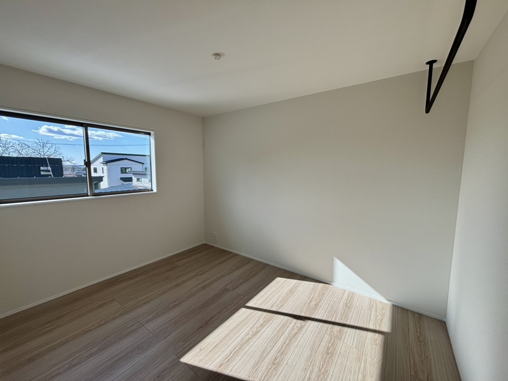 2階居室は日当たりもよく、アイアンの物干しバーがグッドデザイン