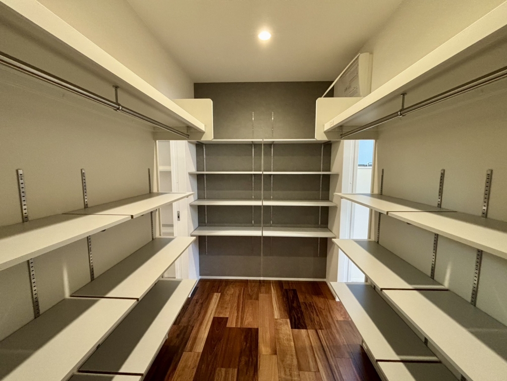 キッチン、パントリーから繋がる収納スペース これだけあれば収納に困ることはありません