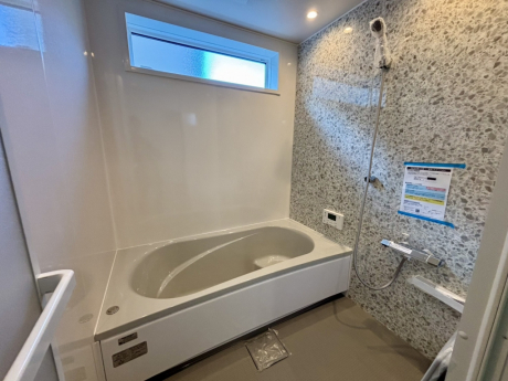 高い位置に窓のある浴室はデザインも防犯にもいいです