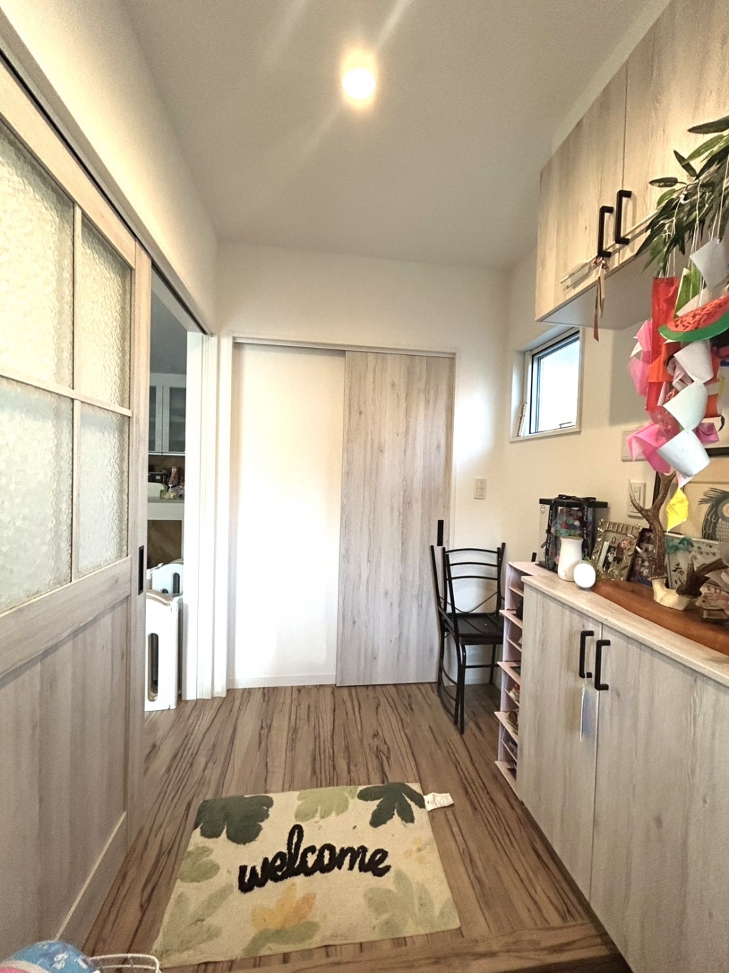玄関はウォークインクローゼットからキッチンへ抜けるプライベート導線も