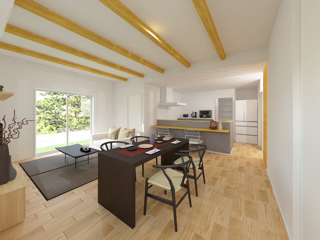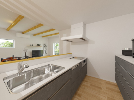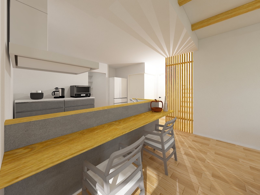 ※リアルパース カウンター付きキッチンで来客と過ごす場所にもなります。