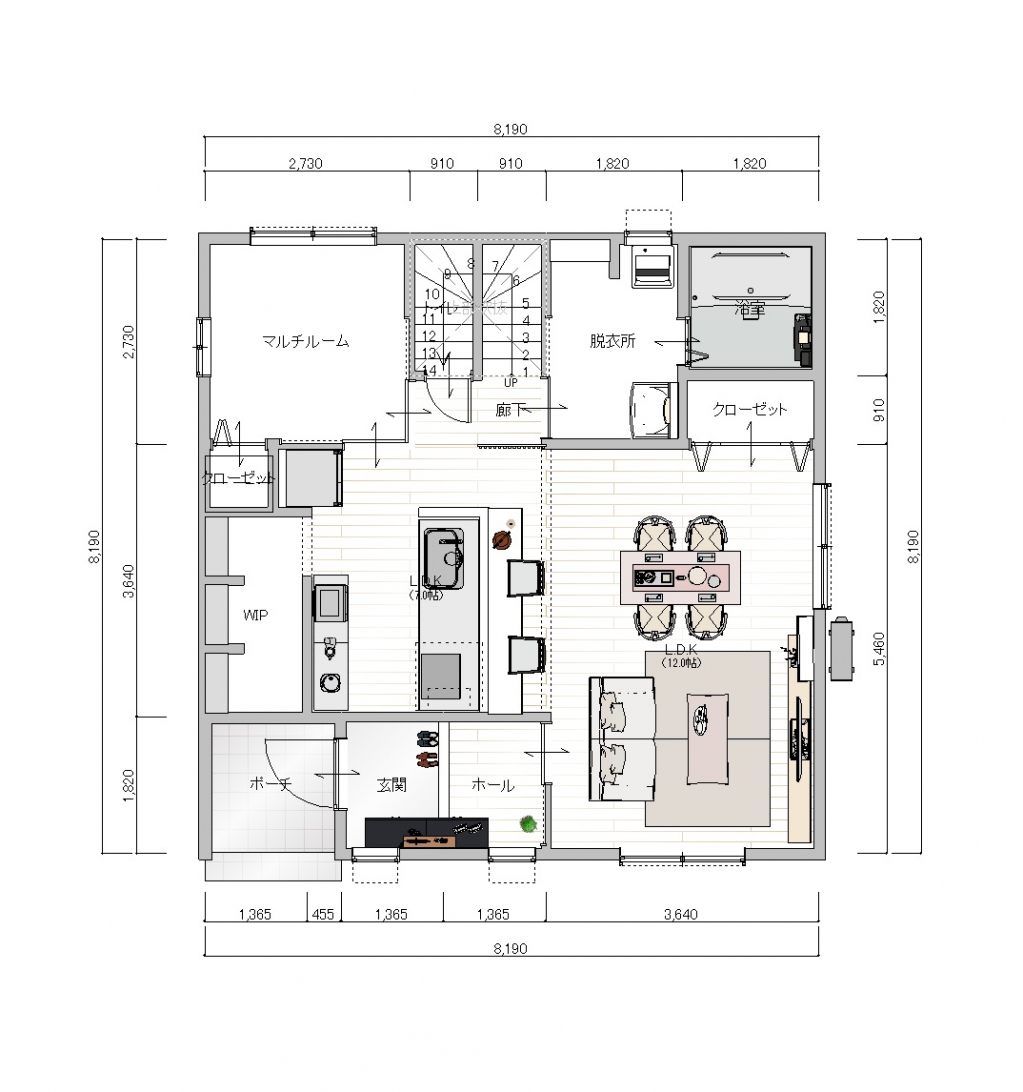一番の見どころは家事動線。マルチスペースをどのように利用するかはご家庭によりで使いやすい間取りです。