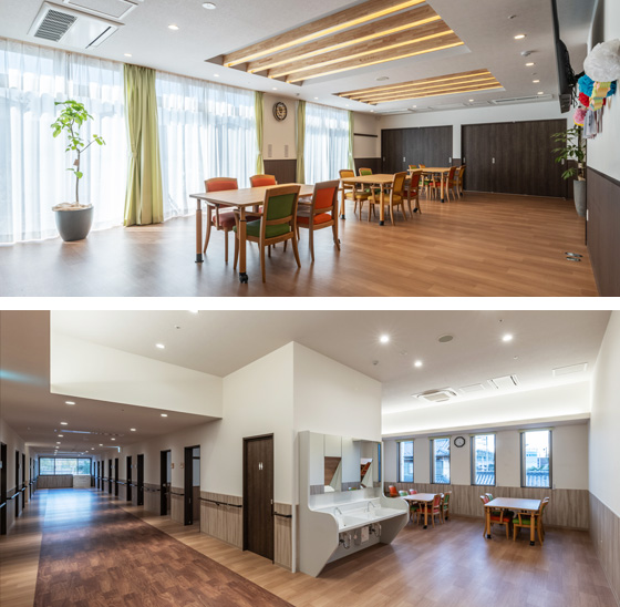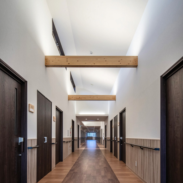 またスタッフの働きやすさも大切にし、動線を意識した広い廊下や、充実した収納スペースを確保。廊下は一般的な施設の1.5倍の幅があり、スタッフはもちろん、利用者の皆さんにも快適な動線が実現できました。