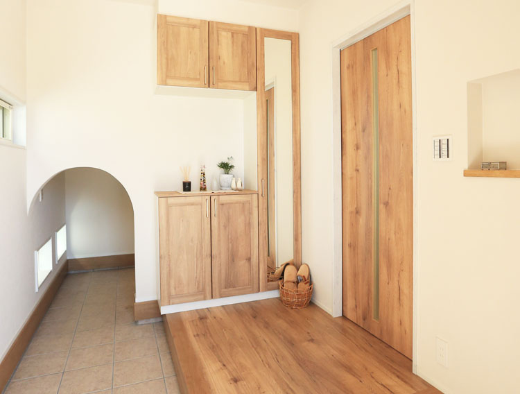 玄関に設けられたちょっとした土間収納は、外使いの物を収納出来て便利です。ちょっと珍しい階段途中に設けられたスキップフロアには本を置いています。ちょっとした空間ですがのんびり過ごすことが出来るお気に入りスペースとなっています。