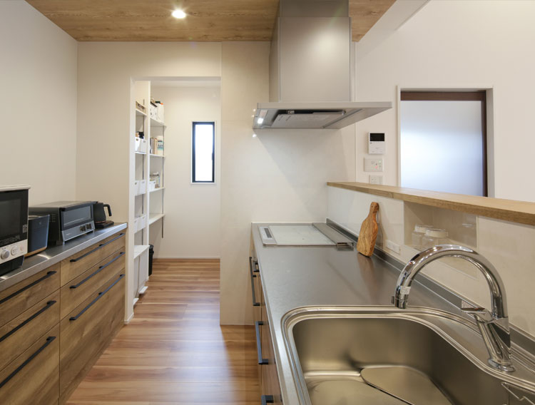 空間を広くとりたかったので、リビングに限らず扉はすべて引き戸にして、開閉時に必要なデットスペースが生まれないようにしました。これで空間に余裕ができたと思います。物が散らかると生活感が出てしまうので、収納は各部屋に作り、すぐに片づけてキレイな状態をキープしやすくなっています。