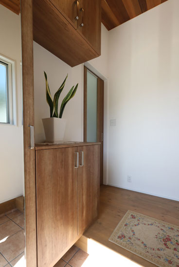 また、SANWAさんの手掛けられた多くの施主さんからの知恵の数々を惜しみなく教えていただけたこともとても参考になりました。提案の中から、私たちのライフスタイルや老後を考えて、寝室は1階に。私は特にその寝室へ続くアーチの入口がお気に入りです♪