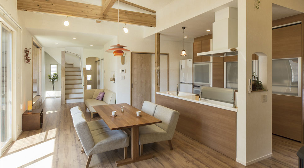 設計にあたっては、家事動線の良さを実現するためにとても良い提案をしていただきました。それがキッチンを中心にリビングが広がる「廊下のない家」というコンセプトだったんです。廊下を無くすことで、子供たちが走り回れる空間や使いやすい家事動線がうまれ、キッチンを中心に家全体がひとつになった感じがしました。空間を上手に使った収納力にも感動しました。