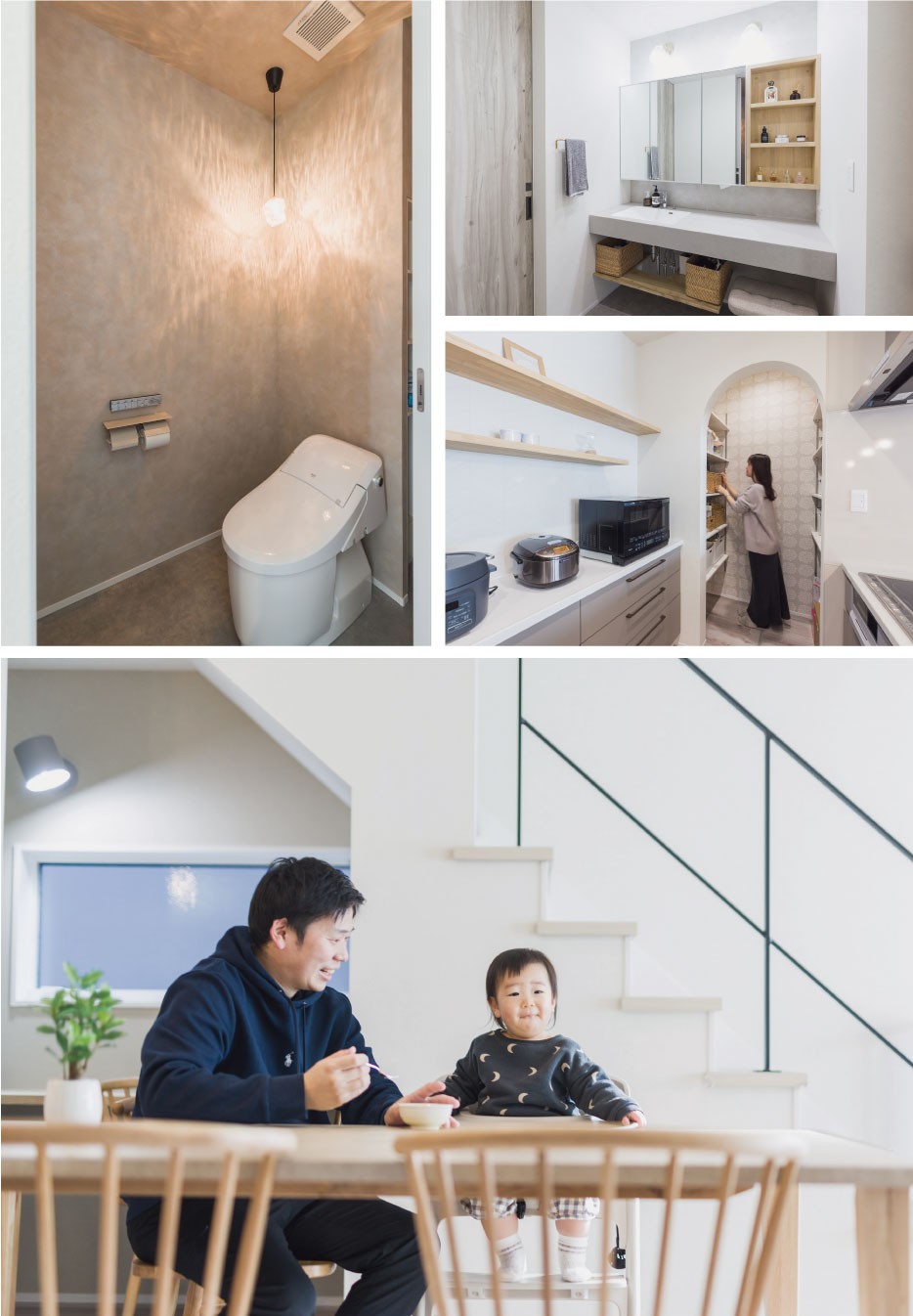 実際に住み始めて感じるのは、やっぱり広さのゆとりです。子どもが家の中を元気に走り回っている姿を見ると、「あ、この家にして良かったな」と自然と思えます。キッチンも使いやすくて料理がしやすくなりましたし、動線がいいおかげで掃除もしやすく、無理なくキレイを保てているのも嬉しいポイントです。暮らしの中のちょっとしたストレスが減って、毎日を気持ちよく過ごせているなと感じています。