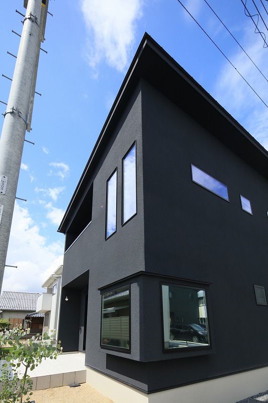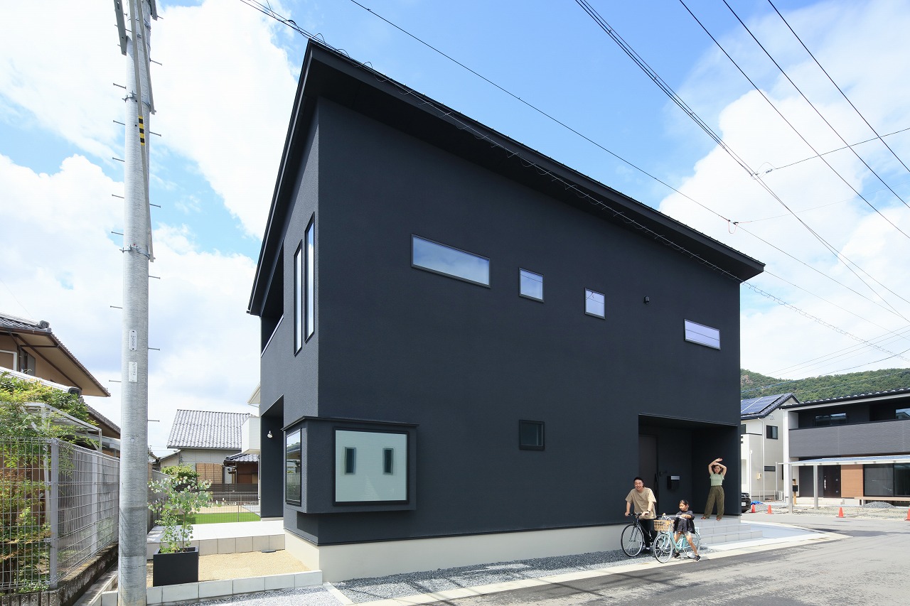家全体に統一感を出したかったので、外観はブラックの吹付ジョリパットにしてシックな印象に。室内も黒、グレー、白を組み合わせ落ち着きのある空間になっています。