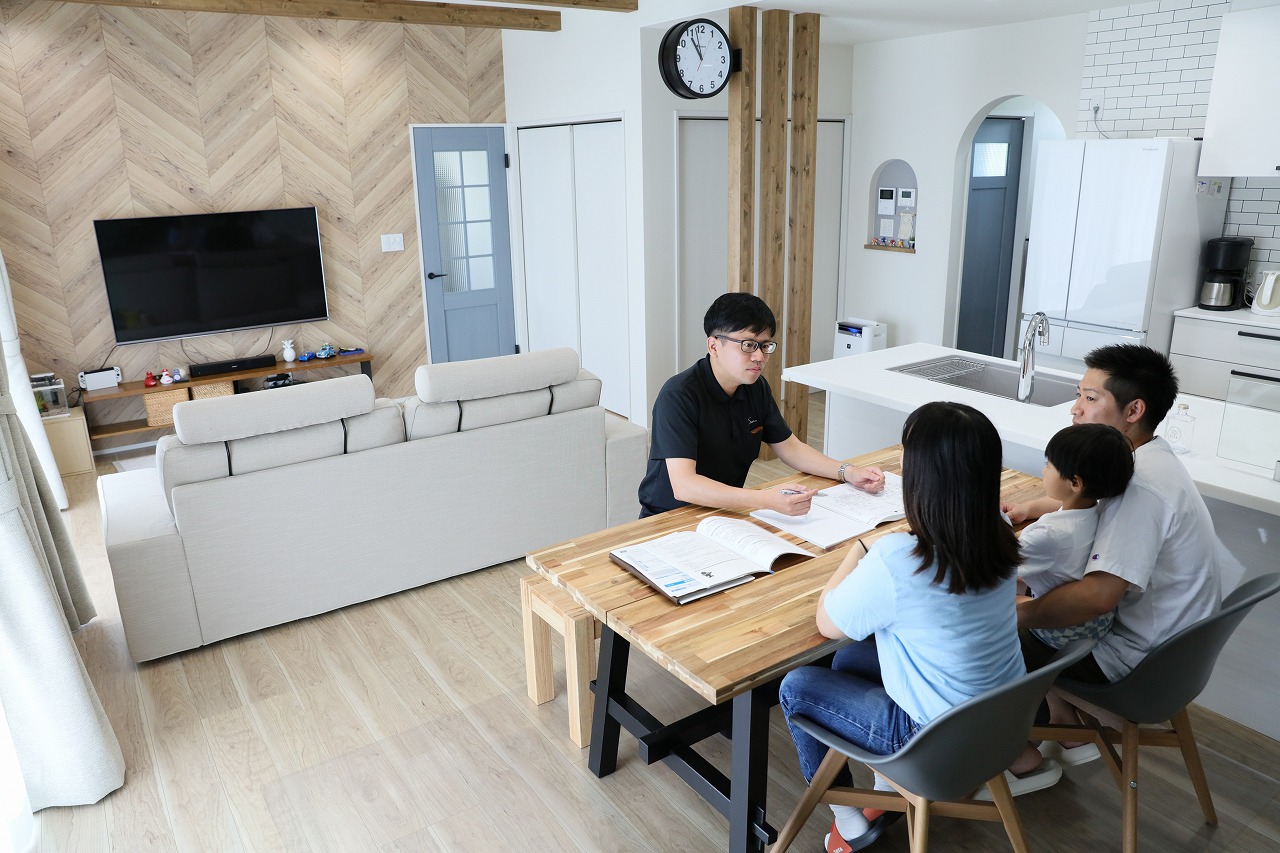 インターネットでハウスメーカーを探していたところ、SANWAさんのホームページに目が留まりました。分譲住宅となるとどの会社も同じような家が多いなか、SANWAさんの分譲住宅はどれも1つ1つ個性があってすごくおしゃれで好きなデザインの家ばかりでした。閲覧していても楽しく参考になることが多く、こんなイメージで予算内でマイホームって出来ないのかなと考えるようになりました。
