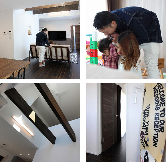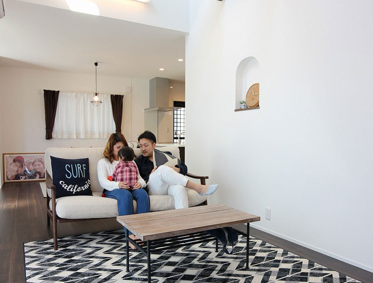 以前から、家を建てるなら絶対に実現したい夢があって、それは「吹抜けのある広いリビング」でした。もちろん吹抜けはコスト高になることや断熱性で不利になることは理解していたのである程度は覚悟していました。しかし、その悩みも耐震設計と高断熱構造であっさり解決してくれました。かなりわがままも言ったと思いますが、私たちの要望を何らかの提案で返してくれる。まさに「夢をつなげる」家づくりでこたえてくれました。それに気をよくして「和室の壁を取りたい」「TVは壁掛けに」などと何度も変更をお願いしてしまい、スタッフの皆さんにはきっとご苦労をおかけしたことかと思います。おかげで完成した時にもやり残し感がなく、心から満足できる家になりました。