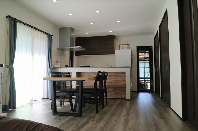 カーポートにつながる勝手口のおかげで外とも繋がる素敵な間取り。