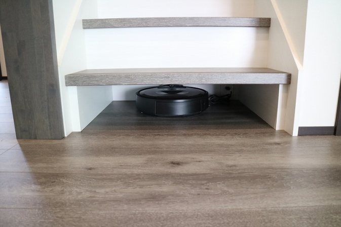 スリッパニッチやお掃除ロボット基地に加え、エアコンの壁裏先行配管をすることですっきりした外観となりました。