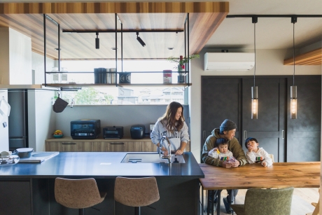 キッチンに立ちながら子どもと会話が生まれ、ダイニングでは自然と笑顔が集まる。