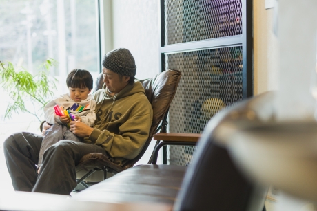 リビングでは、それぞれがくつろぎながらも同じ空間を共有する。