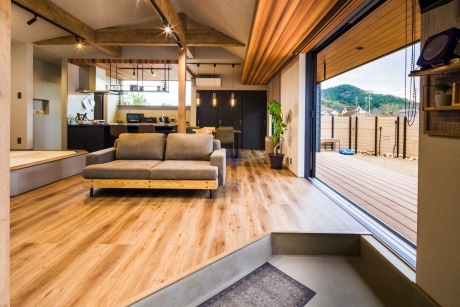 外とゆるやかにつながる開放的な空間も、この住まいの魅力のひとつ。