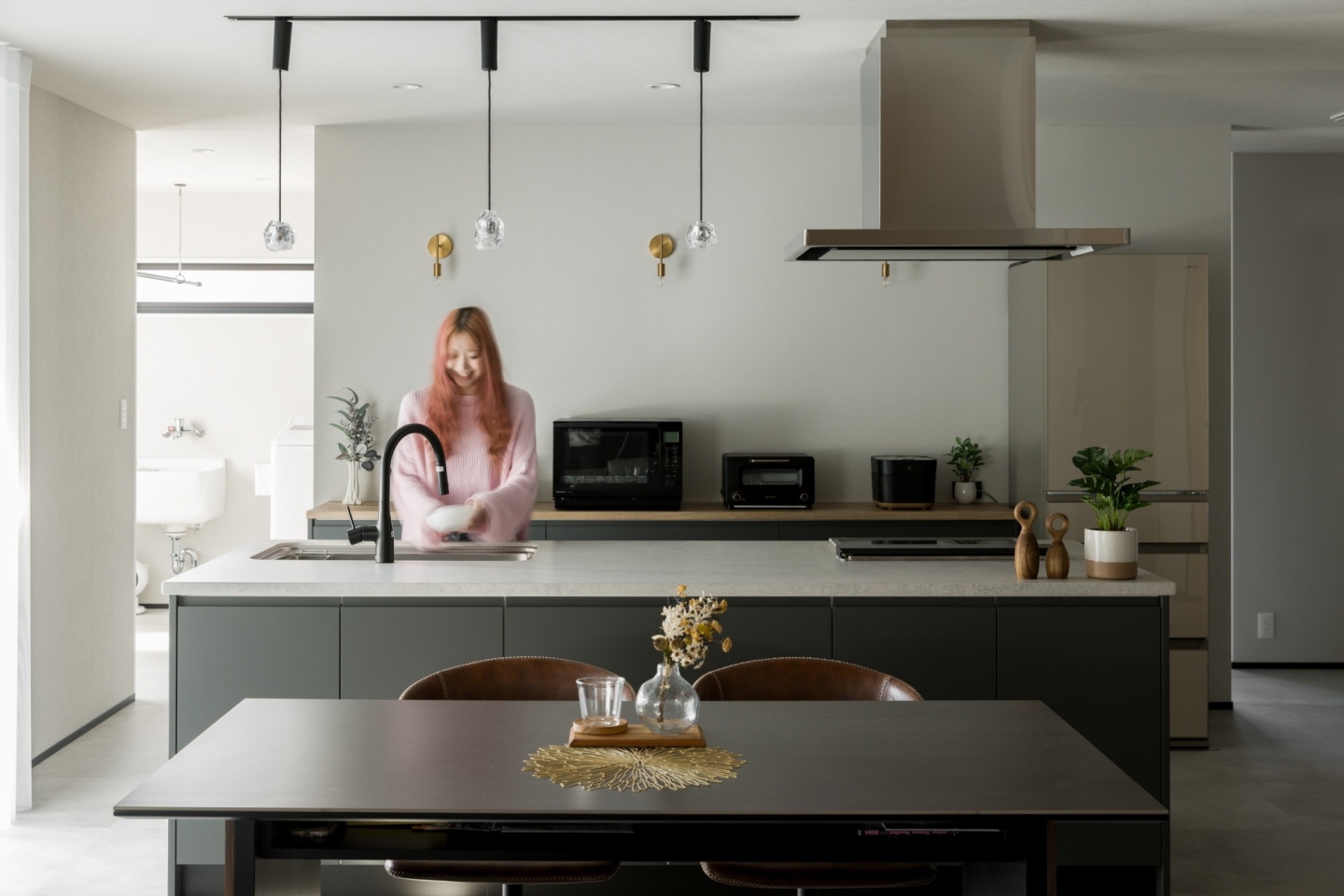 また、生活感が出やすい部分はしっかり隠しつつ、見せる部分は素材感やデザインで魅せる。