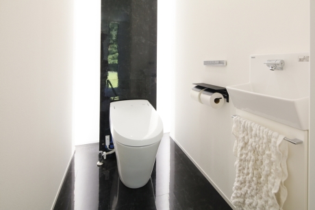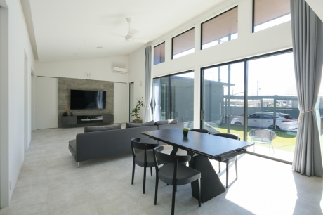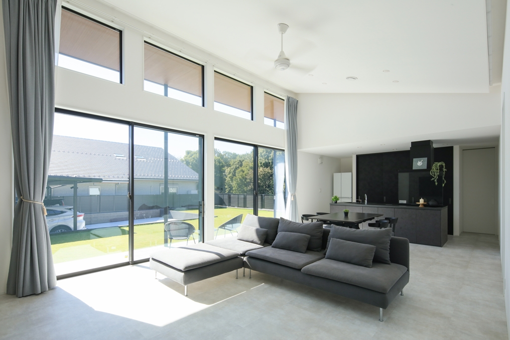 大開口の窓から差し込む光と相まって、より一層の開放感と清潔感を感じられる空間に仕上がっています。