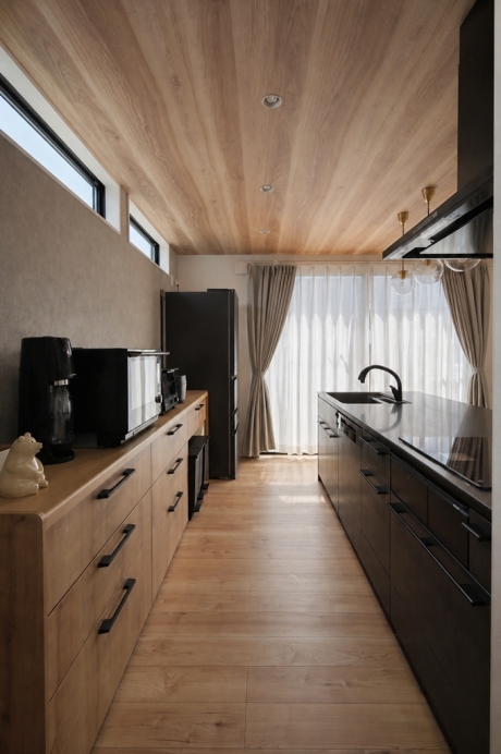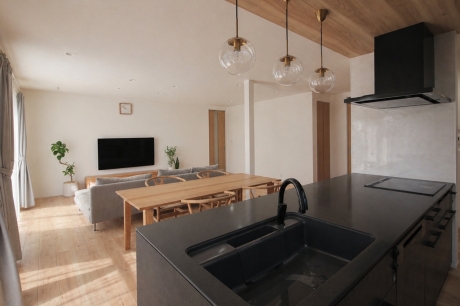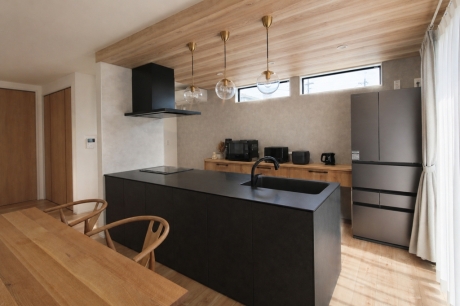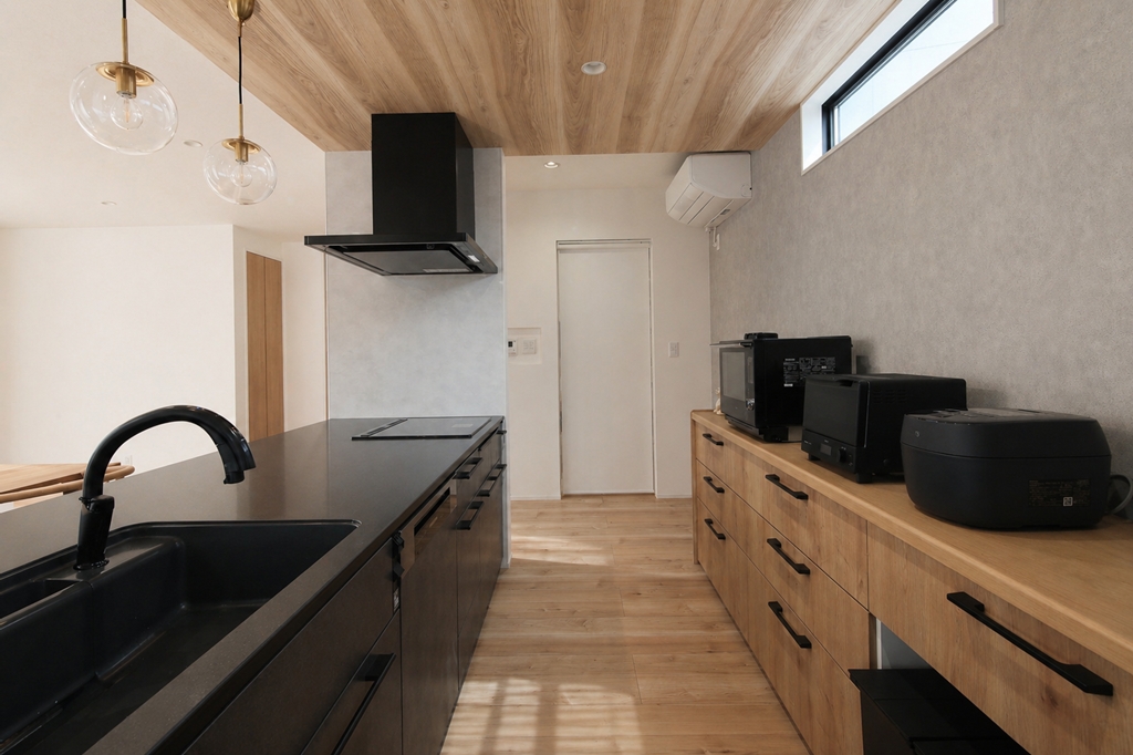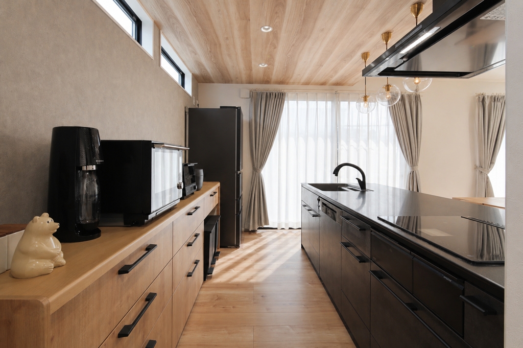 キッチンはあえてブラックでまとめ、空間の中でほどよく引き締まるようにしました。