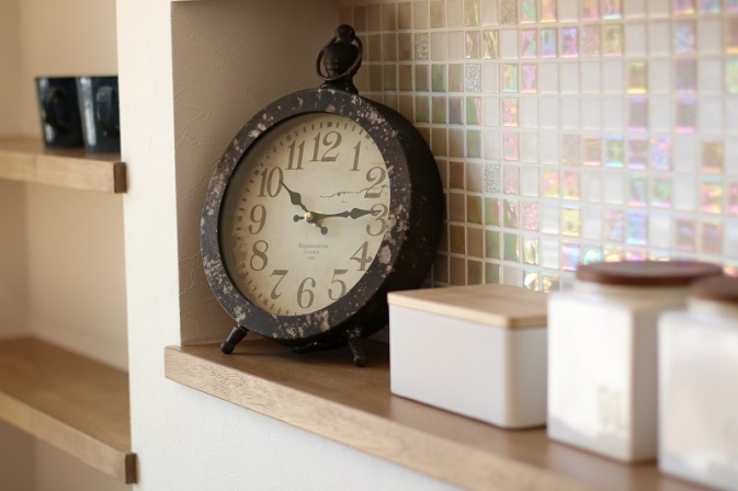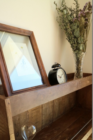 木目のチェリーテイストを基調として内装は温かみのあるアンティーク調家具と雑貨で仕上げました。