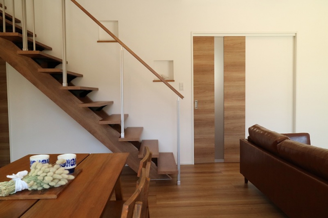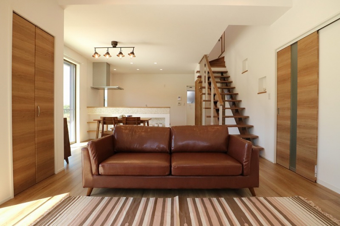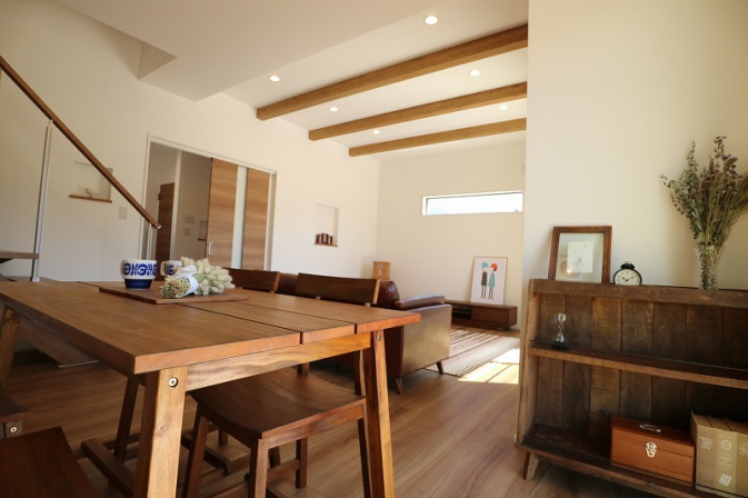 化粧梁が目を引くリビング天井高はなんと2.8mとかなり高めで広く感じられるポイントです。