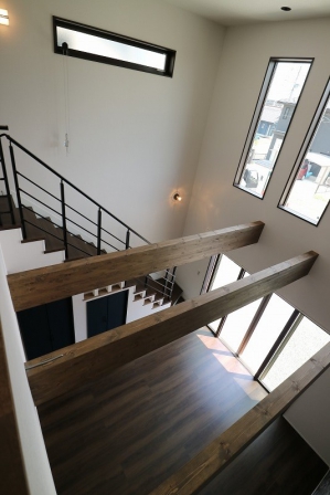 そこで、吹抜け+リモコンスリットシャッターを導入することに。そうすることで、陽当たりもとりつつ、風も通しながら日よけにもなる、且つ冬のエアコン効率を上げることが出来るようになりました。