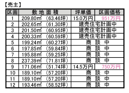 | 物件名 | 美濃加茂市本郷町4丁目字下久手【全12区画】 | 販売価格 |