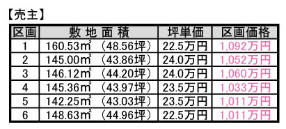 | 物件名 | 羽島郡岐南町八剱【全6区画】 | 販売価格 |