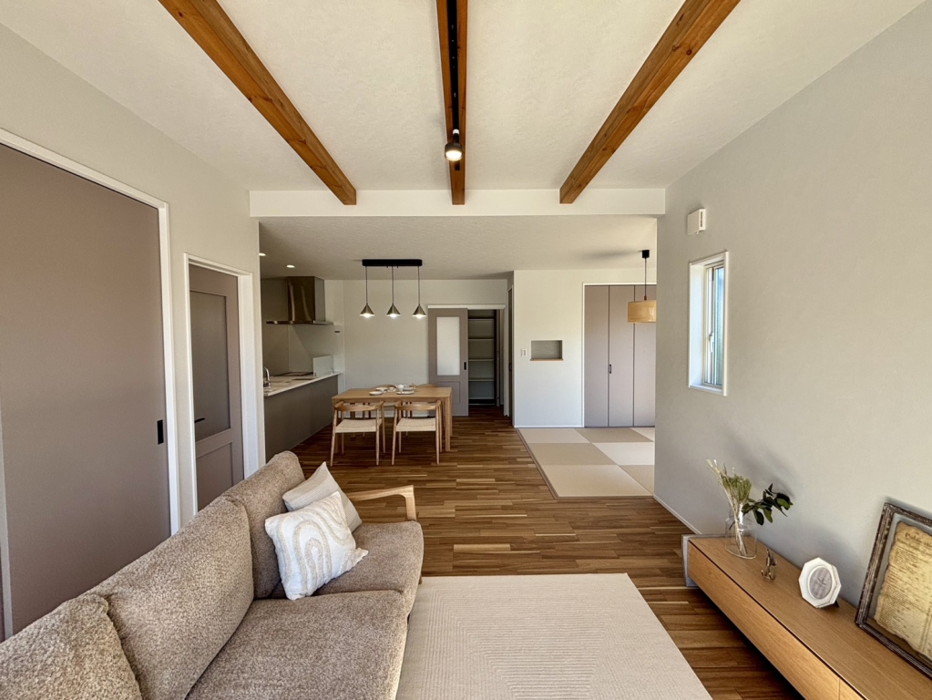 畳コーナーのある開放的なLDKに書斎のある家。