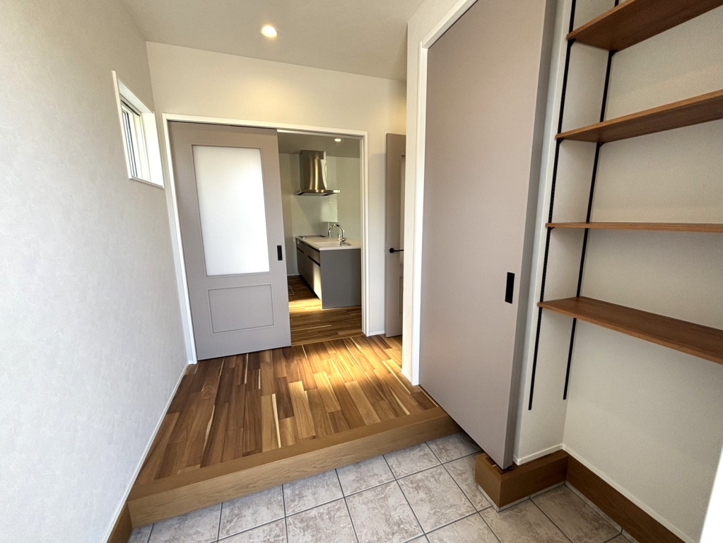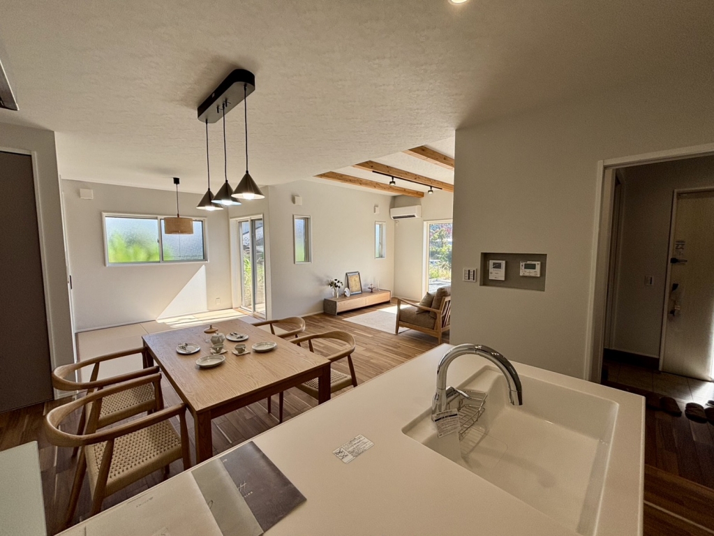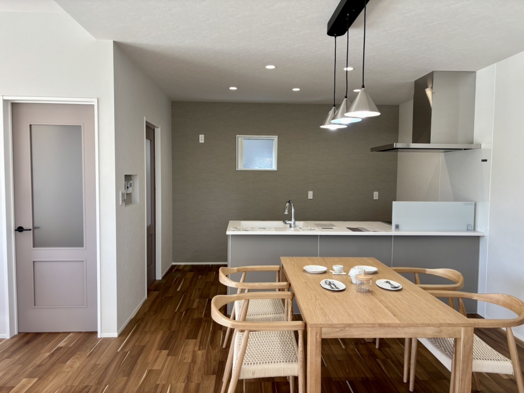 キッチンは開放的なフラットキッチンを採用。20畳のLDKに4.5畳コーナーを隣接し建具を取っ払い大空間に。