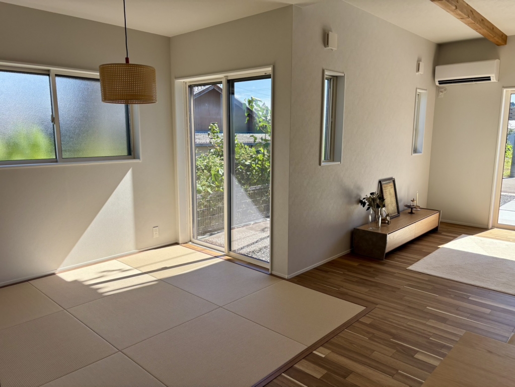 リビングと畳コーナーに特大の掃き出し窓を設け日当たり抜群。